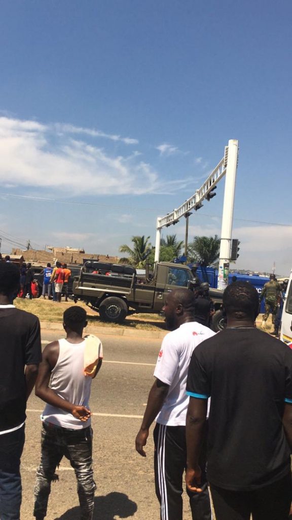 A joint military and police force have clashed residents of Awoshie Vineyard, a suburb of Accra to prevent them from blocking roads over pedestrian knockdowns.