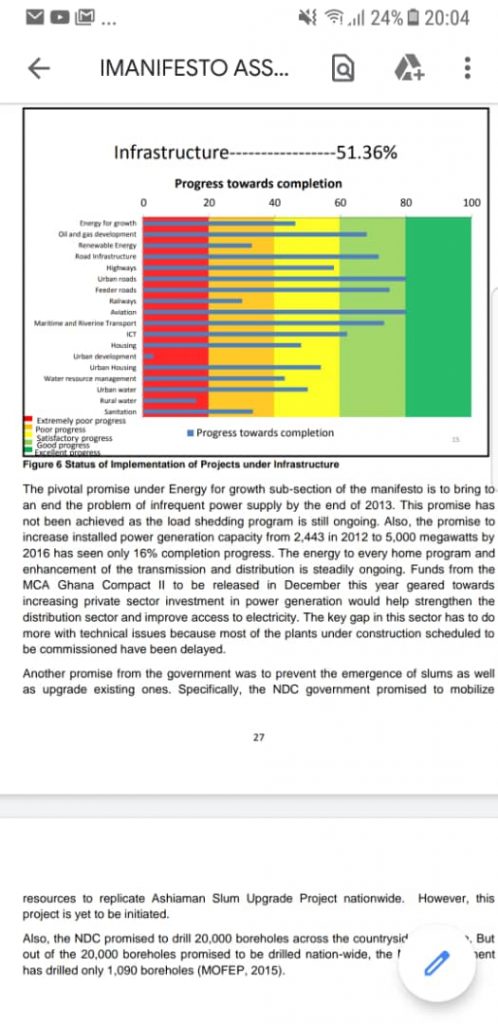 In 2019, after three years of executing the ( 2016-2019) IMANI’s NPP manifesto, it revealed that on Infrastructure, the NPP scored a good 46.44%. The NPP had done more in infrastrcture than they claim.