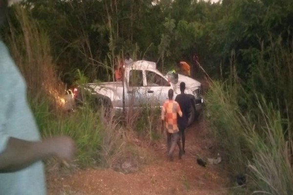 Sources say the pick -up veered off the road causing it to somersault severally before landing in the nearby bush.