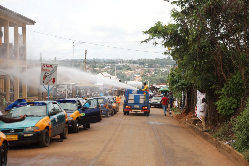 Also markets in Ayemso, Asumbra, Dominase and Mim all in the Ahafo Region were disinfected. At all the market centres, there were police personnel who ensured compliance and smooth execution of the exercise.