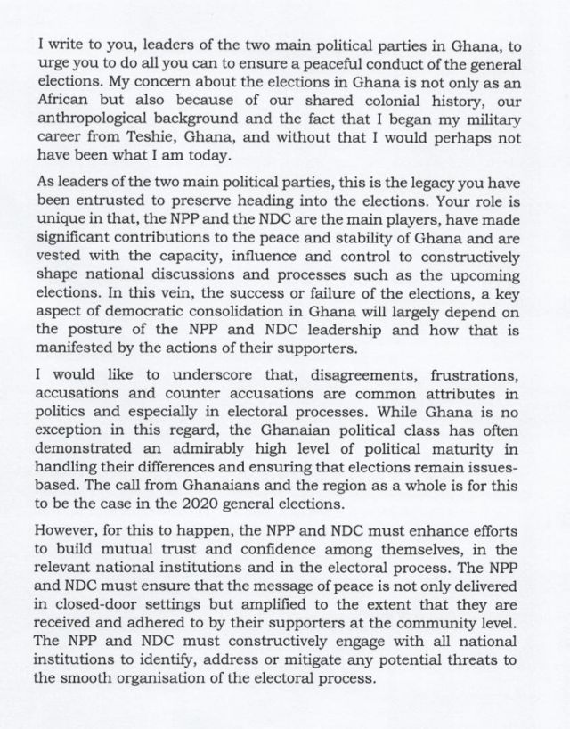 “I implore you to approach these elections with a very competitive spirit but also with respect for one another, respect for democratic values, love for country, and a sense of responsibility to preserve the gains Ghana has made since the advent of democracy,” part of the statement read.