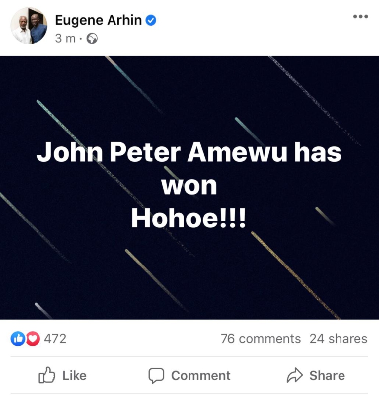 Amewu grabs Hohoe seat for NPP – Eugene Arhin