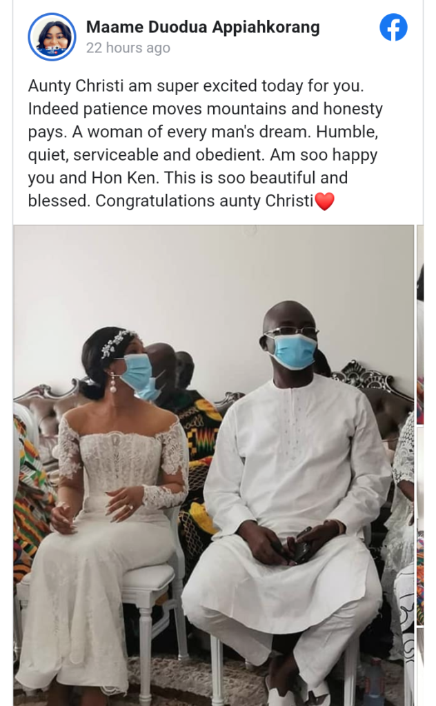 The leading New Patriotic Party member is said to have tied the knot with a lady only identified as Christiana.