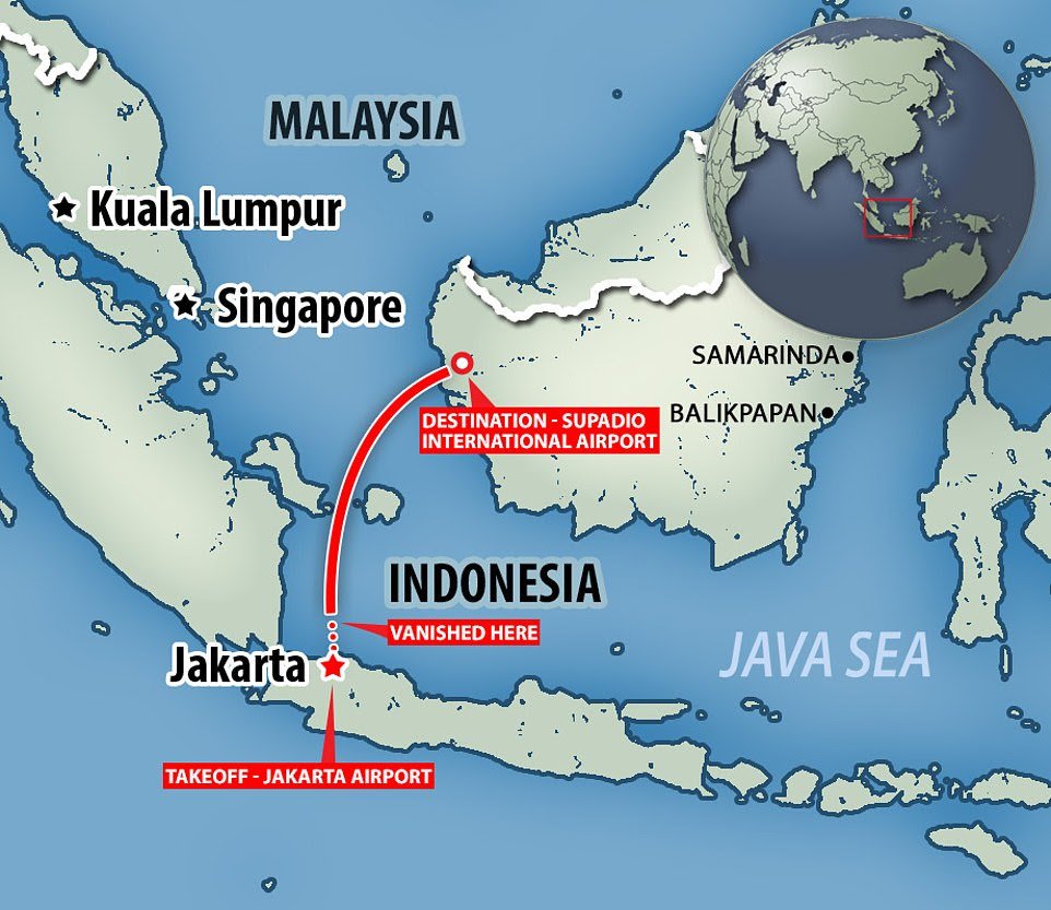 She said: ‘A Sriwijaya (Air) plane from Jakarta to Pontianak (on Borneo island) with call sign SJY182 has lost contact.
