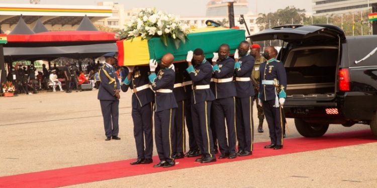 Nine wreaths were laid for Mr. Rawlings by his family, the NDC, ECOWAS, the military, among others.