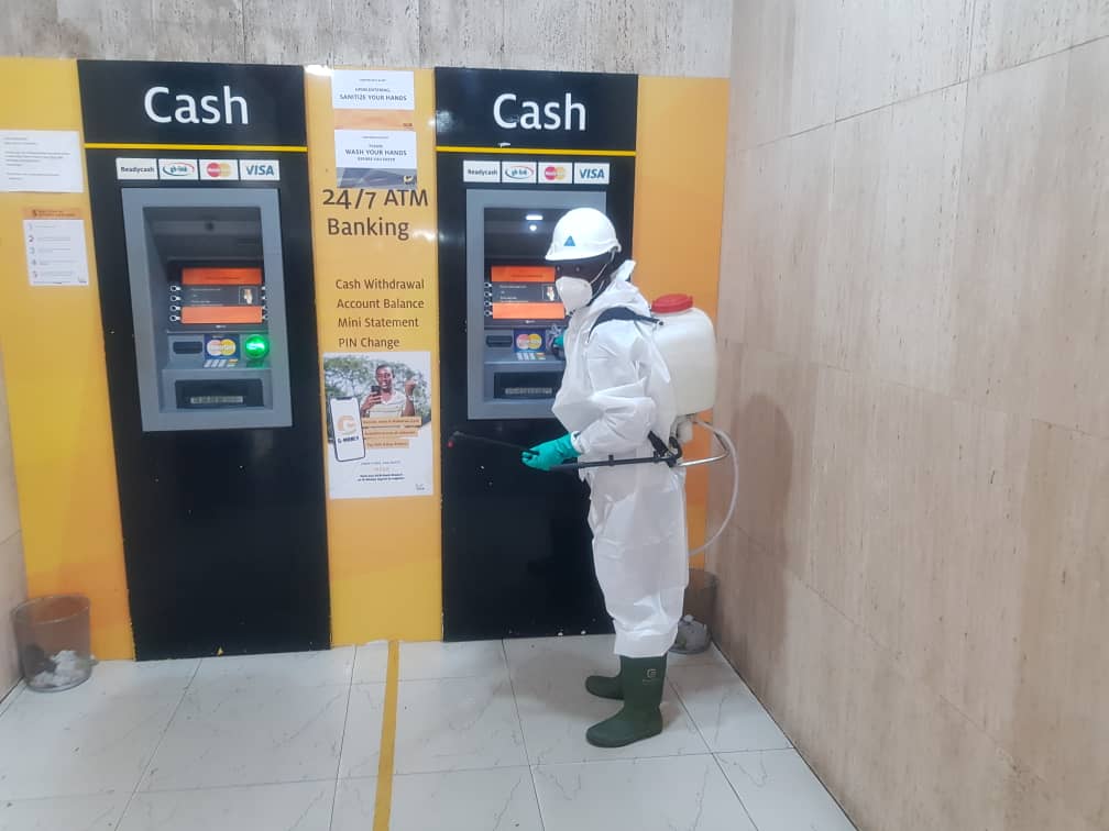 Touching on today’s disinfections, she said “we just came from the Ghana Commercial bank Headquarters. We’ve done the Zenith bank and as I speak to you, our people are at the Academy of Arts and Sciences and here we are at the University of Ghana medical centre”.