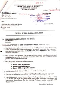 The wife of Mr. Eugene Arhin, Director of Communications at the office of the President, Gloria Assan Arhin has filed for divorce over adultery, emotional and physical abuse among others.