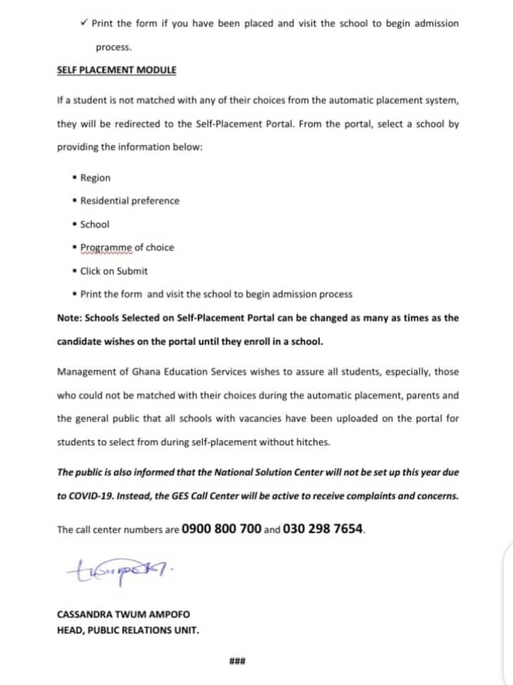 “Management of Ghana Education Services wishes to assure all students, especially, those who could not be matched with their choices during the automatic placement, parents and the general public that all schools with vacancies have been uploaded on the portal for students to select from during self-placement without hitches,” the statement added.