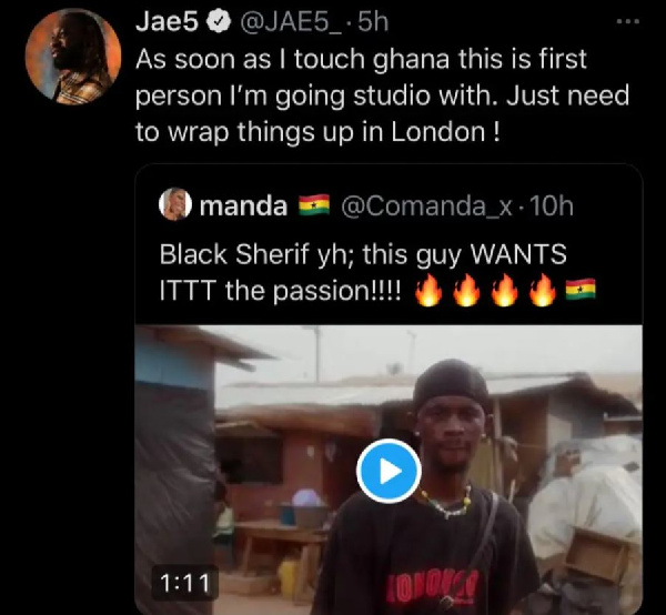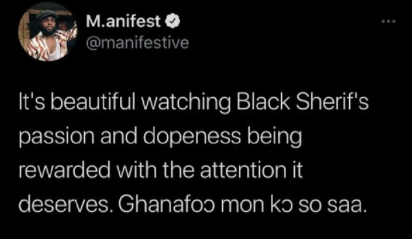 Colleague rapper, Manifested tweeted “It’s beautiful watching Black Sherif’s passion and dopeness being rewarded with the attention it deserves.“