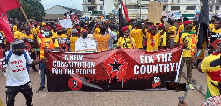 Ernesto Yeboah, the Commander-In-Chief, of the Economic Fighters League, also said they were protesting against a “false” and “rotten” system “that allows the blatant stealing of our resources.”