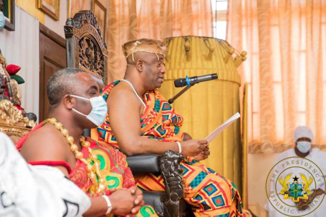 The Monarch lauded the President for the impact of policies, programmes and developmental projects he has undertaken in the Region. He specifically mentioned the James Town Fishing Harbour and the Salaga Market.