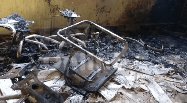 According to eyewitnesses, the suspects reportedly vandalised the glass doors before setting all furniture on fire in the commander’s office.