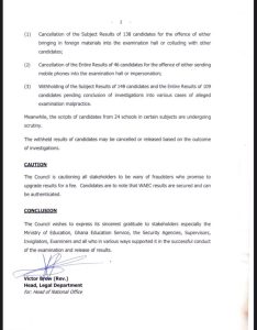 The West African Examinations Council (WAEC) has released the provisional results of the 2021 Basic Education Certificate Examination (BECE).
