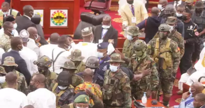 Security personnel have stormed Parliament following several commotions recorded in the House since the inauguration processes for the 8th parliament...